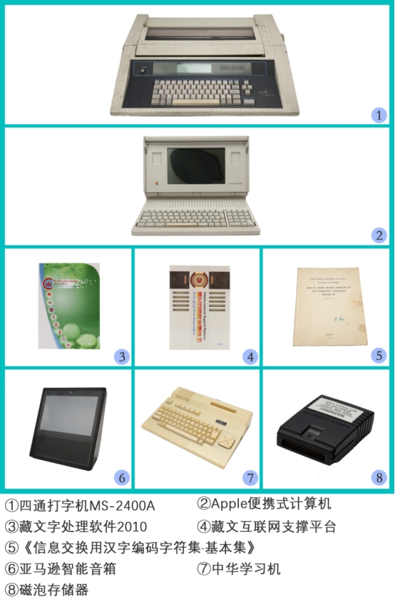 个人捐赠领域的藏品传递着捐赠者对计算机科技文化传承的热忱。西北民族大学于洪志教授捐赠了藏文互联网支撑平台、藏文字处理软件2010等藏品,这些藏文信息化的成果为藏文在互联网时代的传播应用提供了重要支撑,对保护民族语言文化、推进民族地区信息化建设具有重要意义,是民族信息化技术创新的珍贵见证。北京燕山计算机应用研究中心原硬件室主任黄梦林先生捐赠了《信息交换用汉字编码字符集·基本集》与ZD-2000A全电路图,其中《信息交换用汉字编码字符集·基本集》是国家首个汉字编码字符集标准,为中文信息处理奠定了基础,结束了早期汉字编码混乱的局面,简化了字库存储需求,降低了系统成本,促进了汉字输入、显示和打印技术的发展。国投智能信息科技股份有限公司董事长滕达先生捐赠了苹果台式机Apple II、Apple便携式计算机Macintosh Portable-Backlit、中华学习机CEC-I、各类手机拆解画等共计64件藏品,这些藏品跨越数十年科技发展历程,既有个人计算机萌芽发展时期的经典之作,也有国产科技产品本土化探索的代表产品,承载着独特的技术记忆与时代价值。四通公司创始人、四通控股有限公司主席段永基先生捐赠了四通打字机MS-2400A,MS-2400的出现标志着中文机械打字时代的终结,开创了中国办公自动化和信息化的新潮流,它被CCF认定为“中国计算机一类历史记忆”,是见证中国汉字信息处理技术演进的重要实物资料。刘佩瑜先生捐赠了磁泡存储器,它是一种非易失性存储器,使用了一种较薄的磁性材料制成的胶片来维持小型的磁化区域,这些区域被称作是“磁泡”或者“磁域”,每一个这种区域存储一个位元的数据,因其高密度与固态特性曾被视为替代磁芯存储器和磁盘的理想选择,但由于硬盘价格下降、半导体技术发展等因素,磁泡存储器最终未能取得商业上的成功,该藏品丰富了CCM的存储器件展厅馆藏。汤竹女士捐赠的两台亚马逊智能音箱,代表了消费电子领域智能交互技术的发展成果,直观反映了人工智能技术在民用消费场景的普及与应用,展现了科技与日常生活的深度融合。