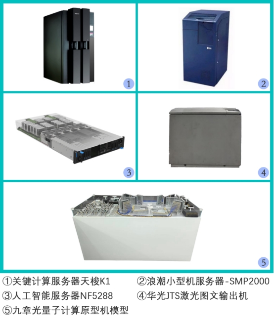 企业捐赠的藏品聚焦于前沿科技成果,彰显了科技创新的技术实力,多件藏品展现出了我国科技企业自主研发,打破国外技术垄断的创新之路。潍坊北大青鸟华光照排有限公司捐赠了华光JTS激光图文输出机,该设备填补了国内多分辨率、彩色图文输出机等技术空白,打破了国外的技术垄断,获山东省科技进步一等奖,展现出计算机技术对中国印刷业的深远影响,为研究汉字信息处理提供了珍贵实物,见证了我国印刷业从“铅与火”到“光与电”的跨越。浪潮电子信息产业股份有限公司捐赠了四台呈现我国自主服务器技术从打破垄断到引领行业的发展历程的服务器,其中关键计算服务器天梭K1是中国首台关键计算服务器,成功打破国外芯片技术垄断,实现32路及以上处理器高效协同,其配套操作系统通过国际UNIX组织认证,使中国成为全球第二个拥有自主UNIX操作系统的国家,目前相关产品在国内关键计算服务器市场占有率超90%,筑牢了我国关键信息基础设施的安全基石,彰显了我国自主服务器技术的突破性成就;小型机服务器-SMP2000采用国内首个SMP架构,支持多处理器协同运算,打破了20世纪80-90年代国外小型机的垄断局面。其支持UNIX等主流操作系统,为当时金融、电信行业信息化改造提供了支撑;人工智能服务器NF5288发布于2016年,曾是全球GPU密度最高的服务器,在2U空间内实现8颗高性能AI芯片高速互联,效能与训练效率大幅提升,且具备灵活扩容与极致散热设计,适配AI场景需求,为深度学习等前沿技术提供了重要硬件支撑,展现出了我国在人工智能服务器领域的成果。九章(济南)量子科技有限公司捐赠了“九章”光量子计算原型机模型,“九章”是中国科学技术大学潘建伟院士领衔的陆朝阳教授课题组主导研制的光量子计算原型机,其命名源自中国古代数学专著《九章算术》。2020年,“九章”求解了最高达76光子的高斯玻色采样问题,求解速度超越经典超级计算机,在国际上首次实现基于光学体系的量子计算优越性,使得中国成为全球第二个实现“量子优越性”的国家。“九章”的后续型号持续实现算力突破,如今“九章四号”已实现了3050个光子的控制,确立了我国在光量子计算领域的国际领先地位。